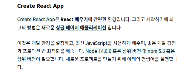 처음에는 ubuntu 18.04 LTS를 사용하고 npm은 5.버전, nodeJS는 12.버전을 사용하고 있었는데 React 페이지를 보니 사용해야하는 버전이 달라진거 같았다.