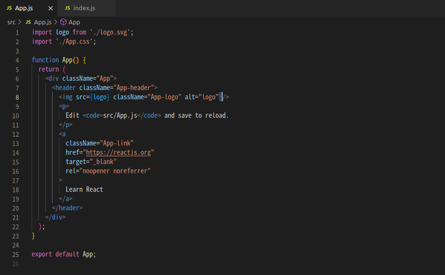 우리는 앞으로 App.js를 수정하면서 코드를 작성하면 결과물을 확인할 수 있다.
